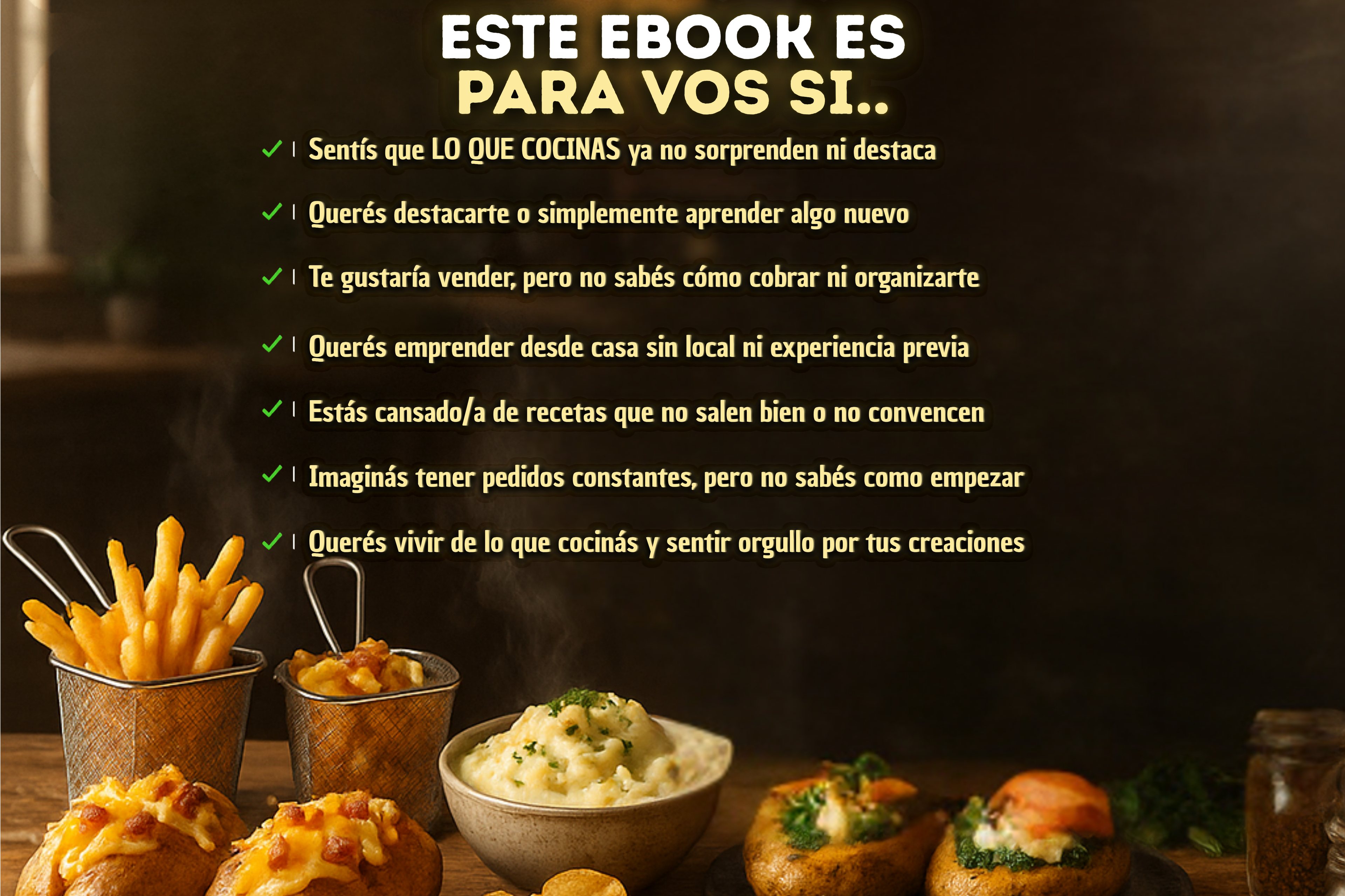 No. El eBook está pensado para principiantes y avanzados: instrucciones paso a paso, tiempos, porciones y tips de presentación. Podés empezar hoy mismo aunque nunca hayas vendido comida.